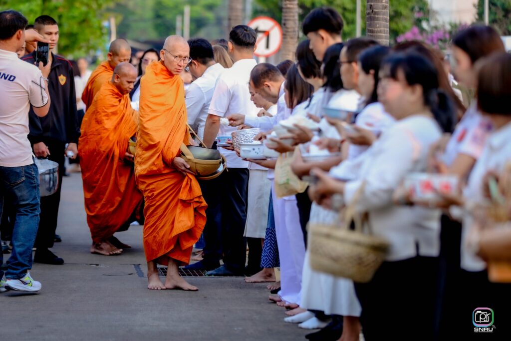วันจันทร์ที่ 23 มีนาคม 2569 เวลา 07.00 น. นางสาวพิชญาดา ธานี ผู้อำนวยการกองกลาง สำนักงานอธิการบดี เข้าร่วมทำบุญตักบาตรในโครงการร้อยใจไทย สืบสานราชธรรม ทั้งแผ่นดิน ณ ห้องภูริทัตโต ชั้น 9 อาคารอุบัติเหตุฉุกเฉินและผู้ป่วยนอก โรงพยาบาลสกลนคร เพื่อถวายเป็นพระราชกุศลแด่สมเด็จพระนางเจ้าสิริกิติ์ พระบรมราชินีนาถ พระบรมราชชนนีพันปีหลวง